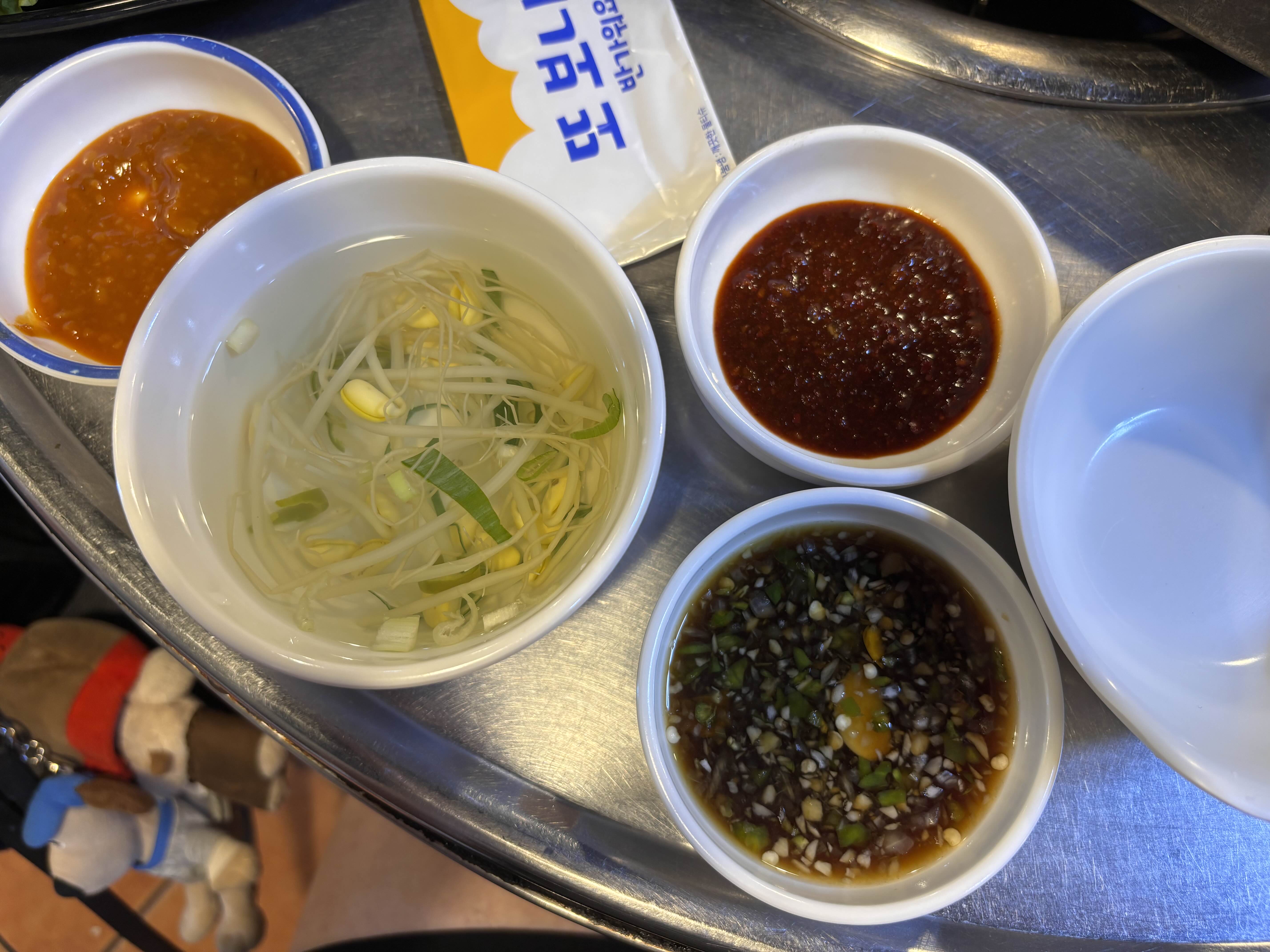 자리에 앉자마자 장이랑 기본반찬부터 주세요!