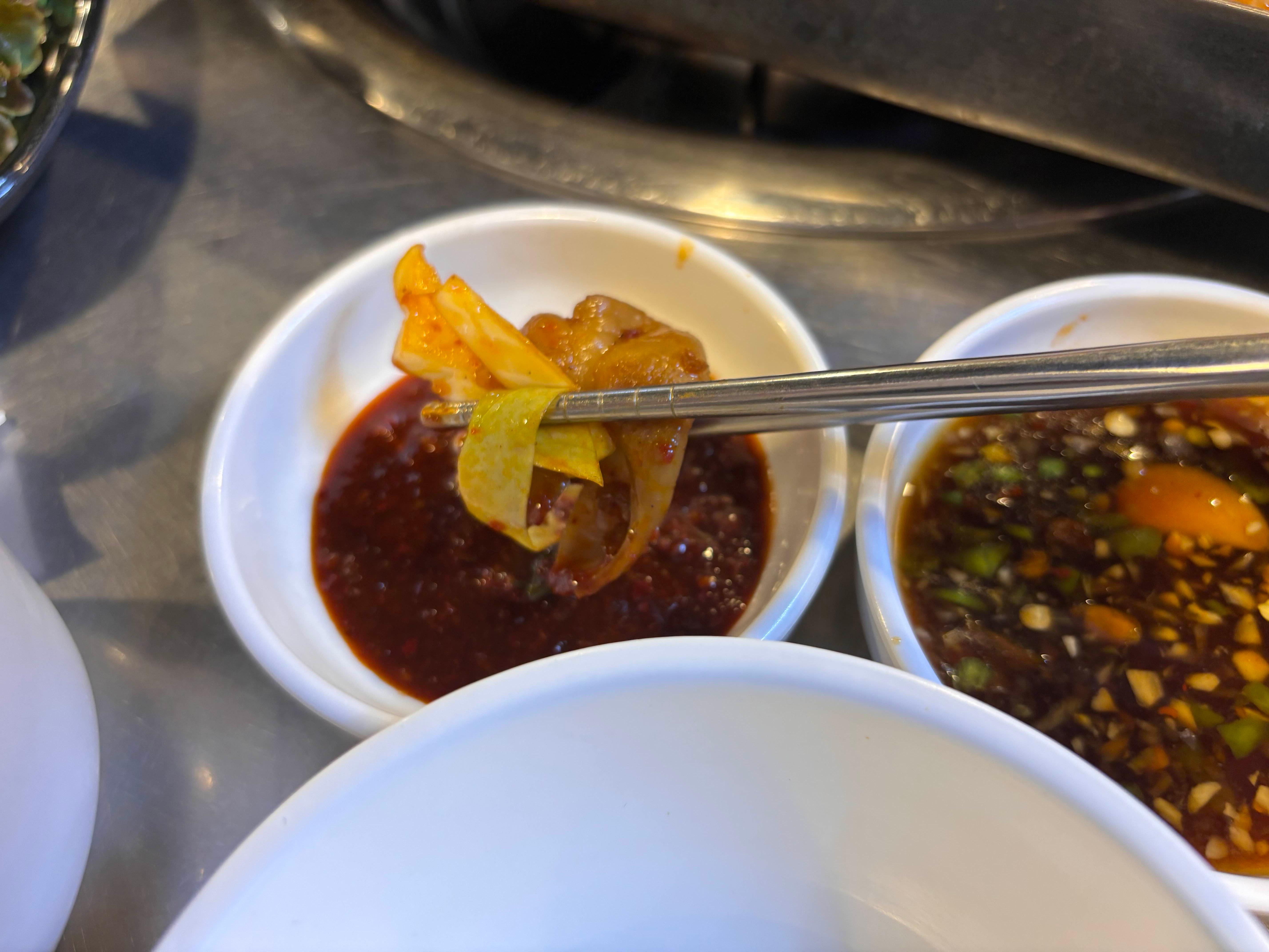 제 짝궁은 빨간양념에 찍어먹으면 맛있다고 하는데