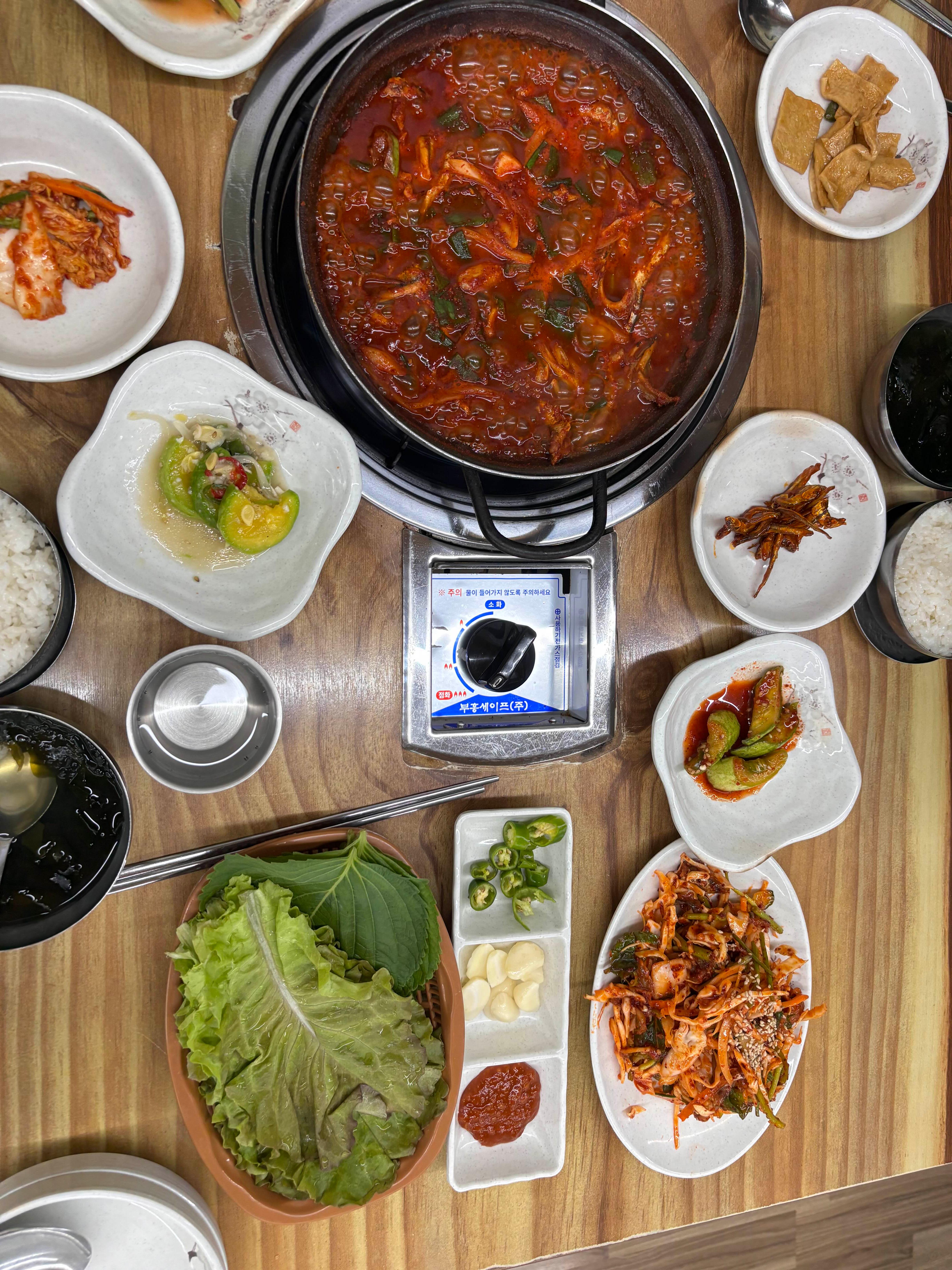 쌈밥이랑 회무침 국도 함께줘서 다 같이